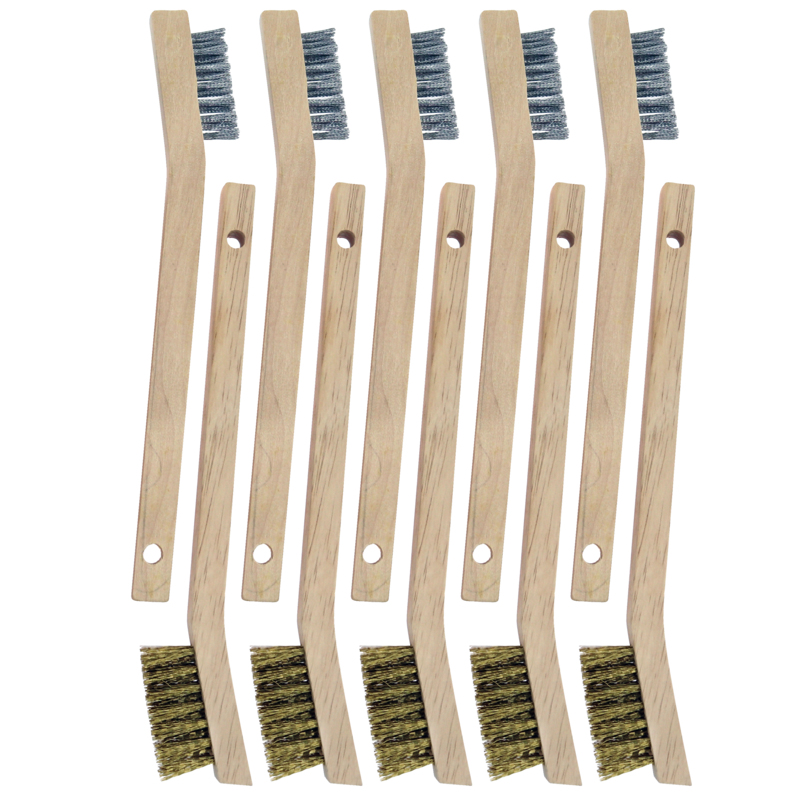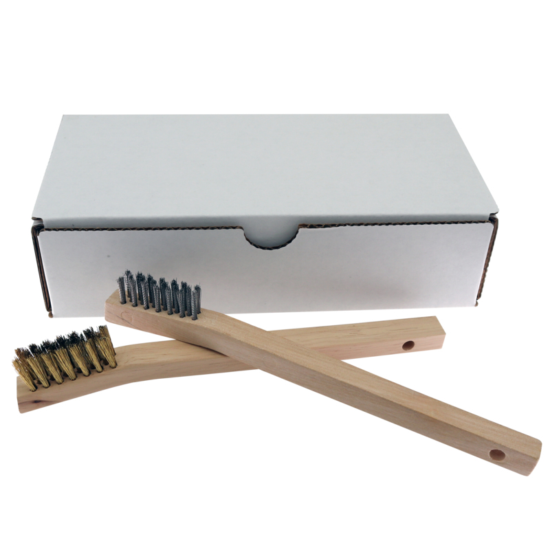 12 Wooden Handle Compact Scratch Brushes – Stainless Steel & Brass Assortment