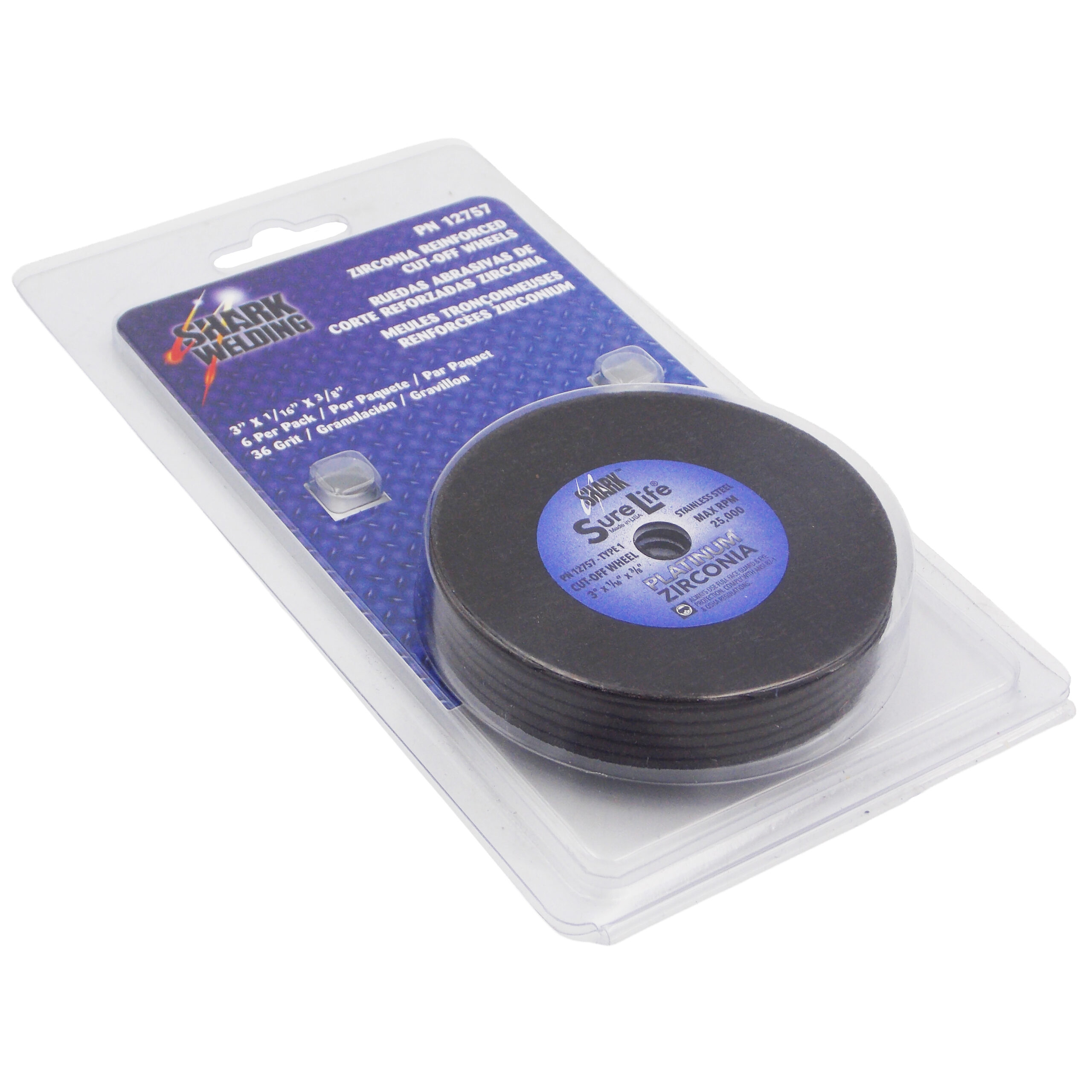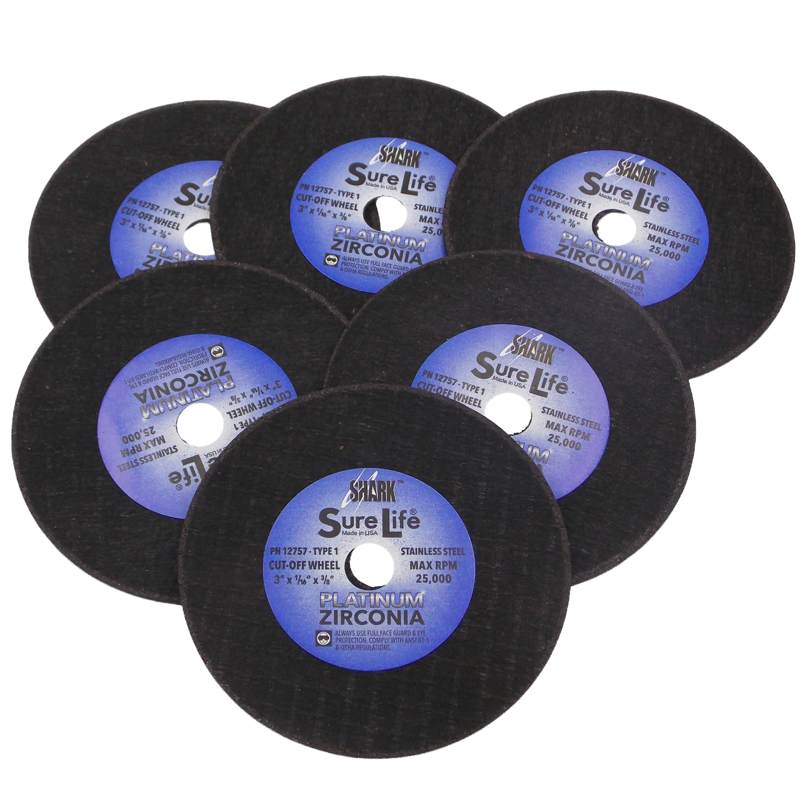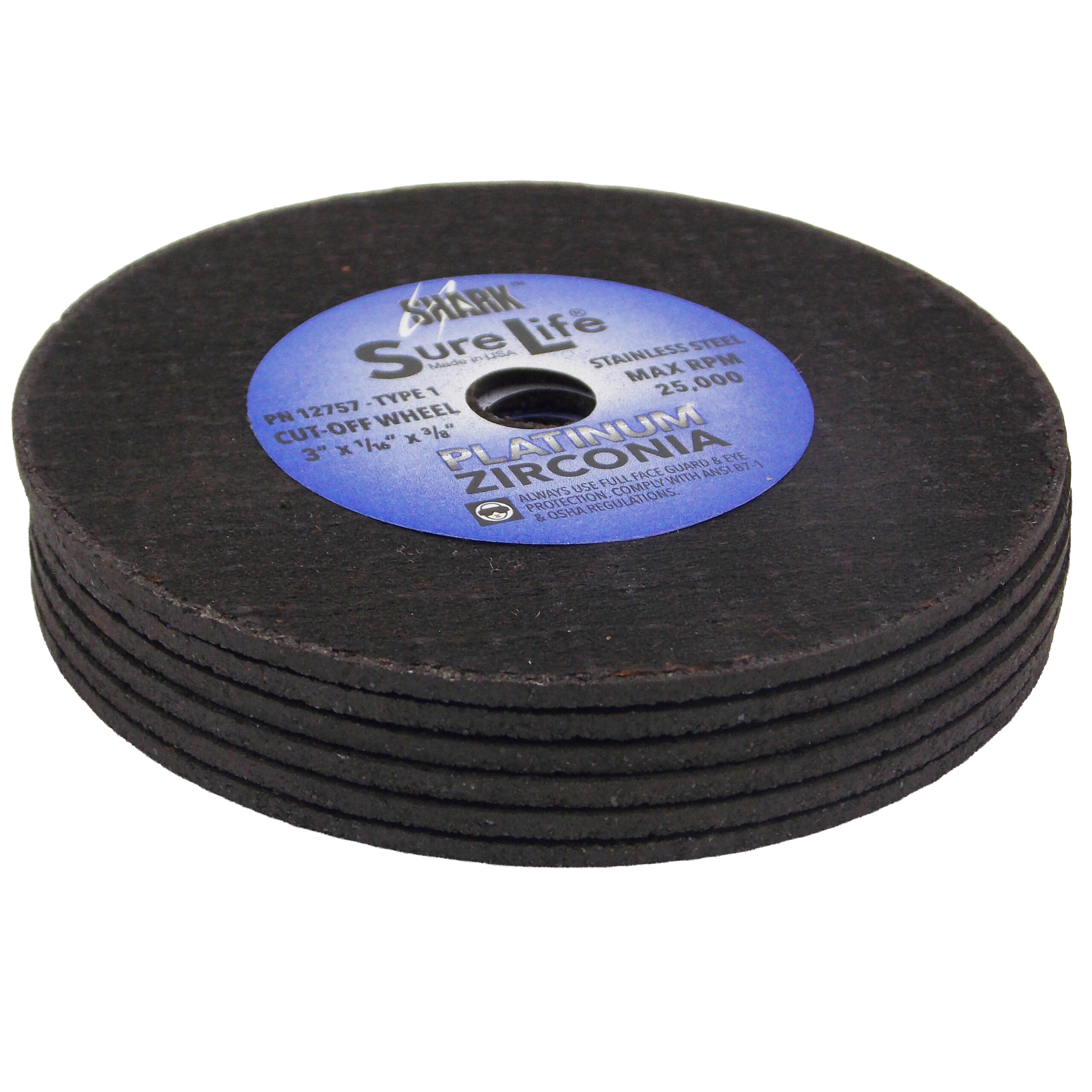 6 PK | Cut-Off Wheel – Zirconia (Sure-Life) – 3″ x 1/16″ x 3/8″ – 36 Grit – Made in USA